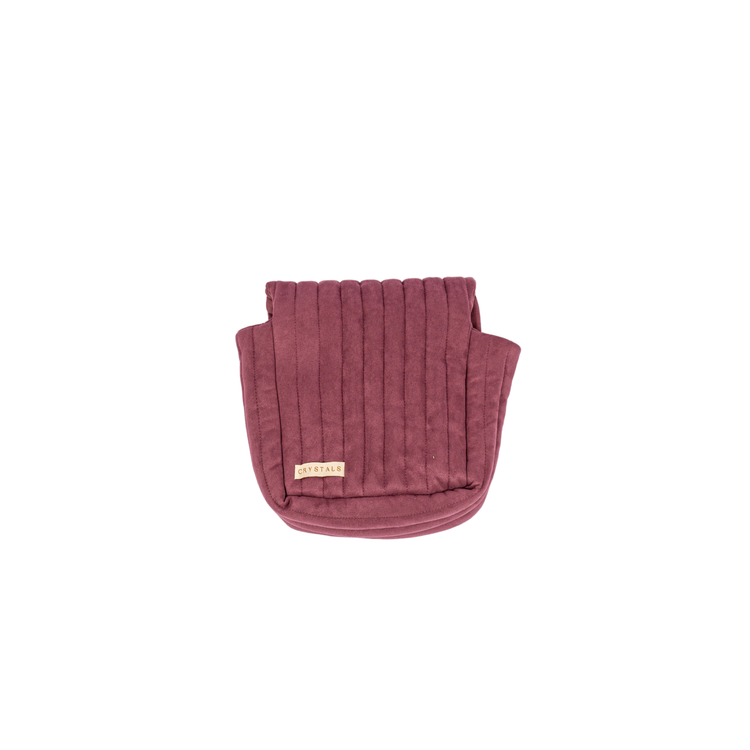 Designed and made by Venus Karma, this luxurious pouch elegantly holds your special minerals in a rich, plum-colored suede material.