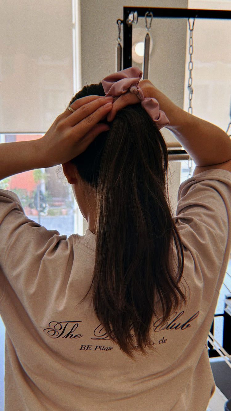 SCRUNCHIE WITH ROSE QUARTZ BEAD