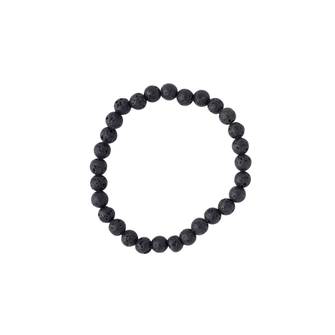 Our lava beaded bracelet features porous beads made from volcanic rock, specifically solidified lava known as basalt. These beads are often black or dark gray and have a unique texture due to their porous nature. A stone that symbolizes calmness. The formation of lava stone beads begins with molten lava erupting from a volcano. As the lava cools and solidifies, it forms basalt, a type of volcanic rock. The rock is then broken down into smaller pieces and shaped into beads. The porous texture of lava stone comes from the rapid cooling process, which traps air and gases within the rock as it hardens. This unique texture makes lava stone beads an interesting and popular choice for beaded bracelets.