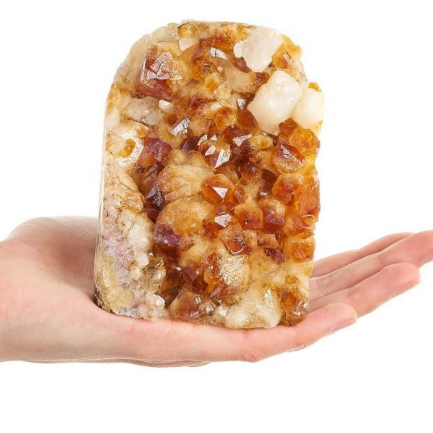This large cut base piece showcases citrine’s vibrant color and is perfect for both decorative and metaphysical purposes, adding warmth and brightness to any space or collection.