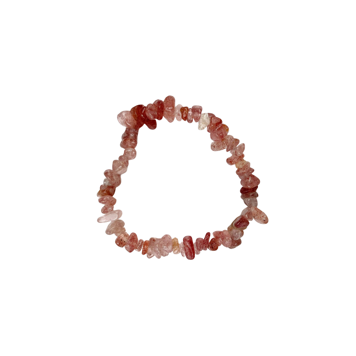Strawberry quartz chip bracelet symbolizes love, joy, and emotional healing. With its delicate pink tones, it is thought to encourage compassion, kindness, and self-acceptance, making it a perfect accessory for nurturing emotional balance and fostering positive connections.