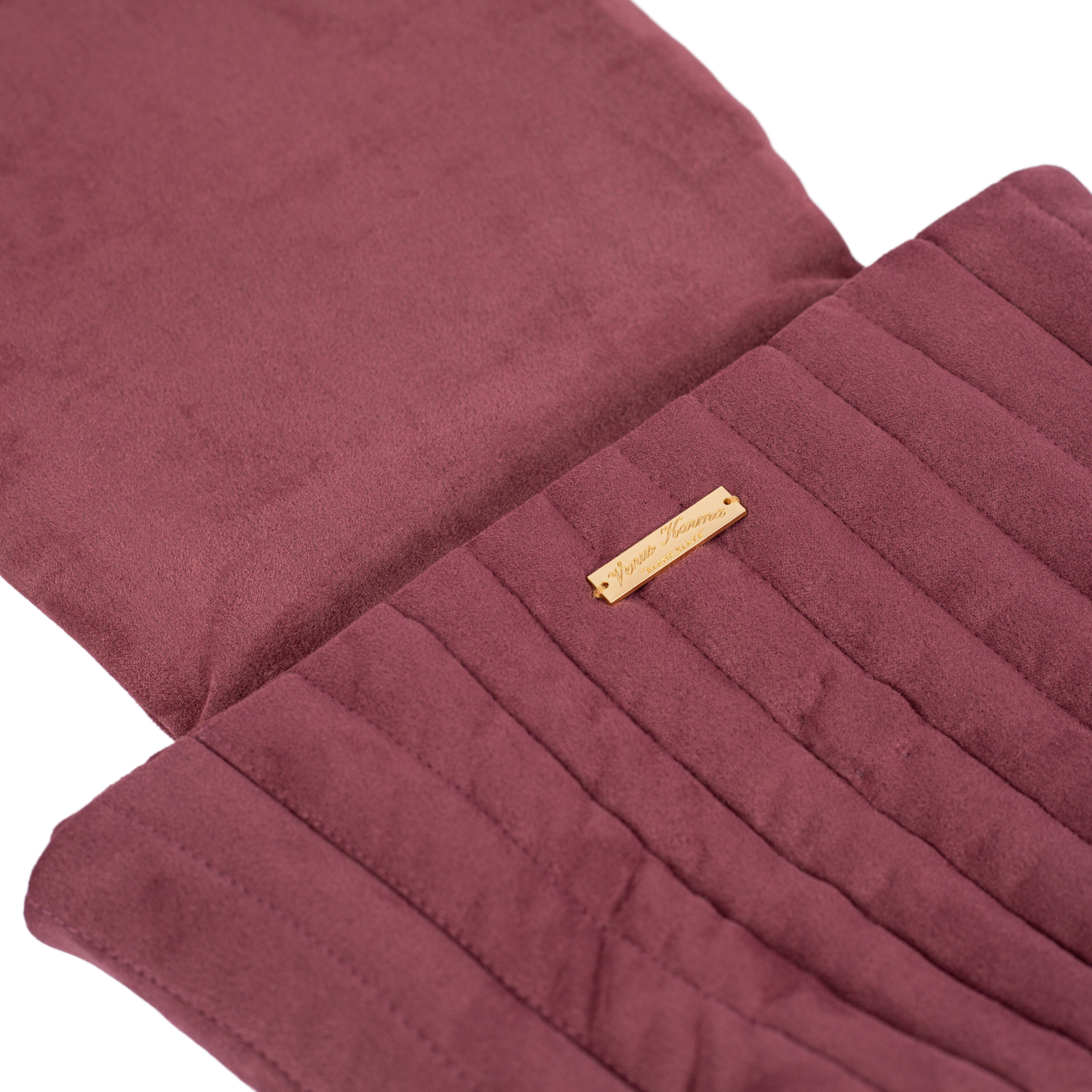Designed and made by Venus Karma, this luxurious pouch elegantly holds your special minerals in a rich, plum-colored suede material.