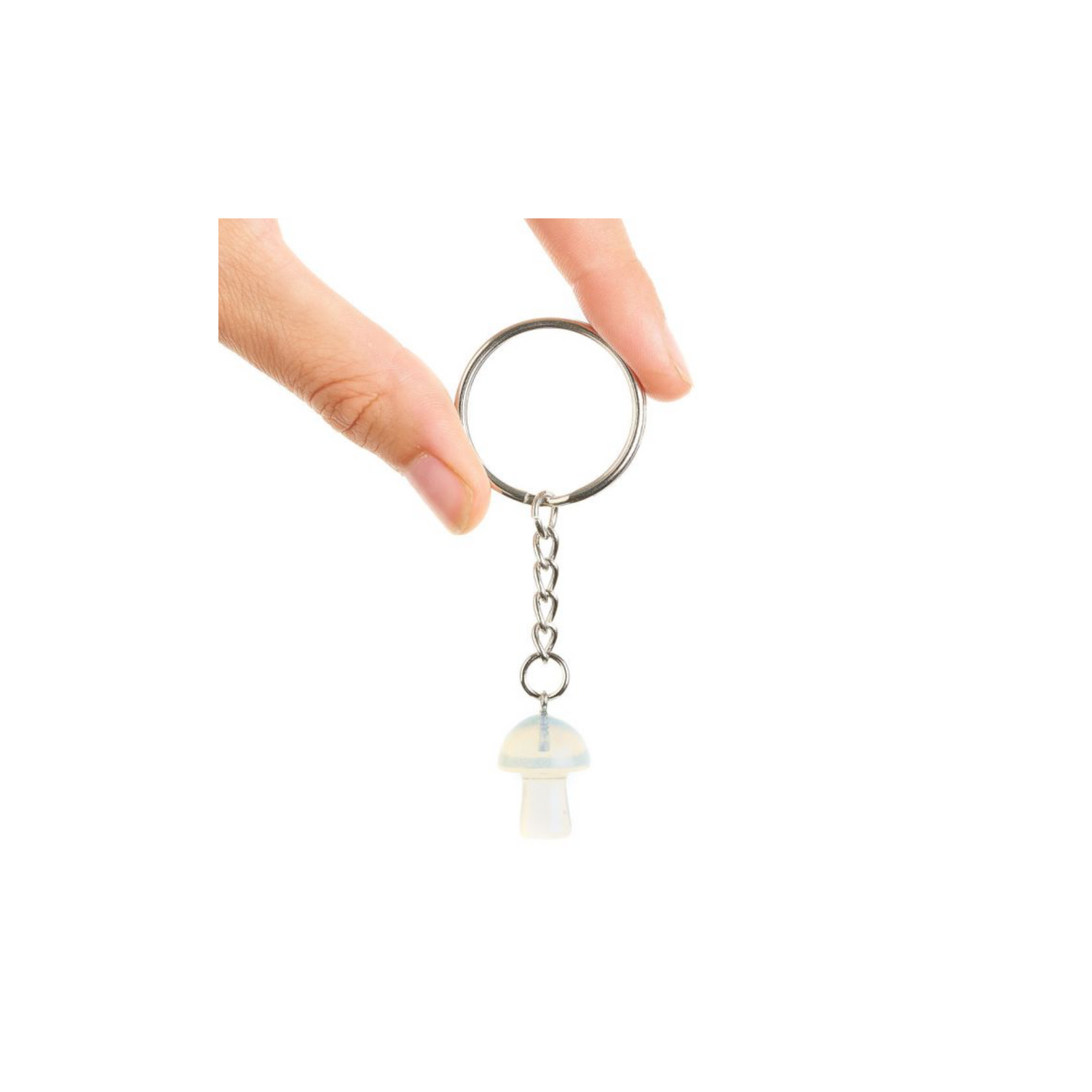 This keyring showcases a polished clear quartz carved into a delicate mushroom shape. Clear quartz, often called the “master healer,” has been treasured throughout history for its clarity and versatility, used by many ancient cultures in jewelry and sacred tools. Known for symbolizing purity and focus, clear quartz adds a timeless elegance to this charming accessory. Carefully crafted to highlight the crystal’s natural transparency and shine, the mushroom keyring is a stylish and meaningful piece perfect for everyday use.