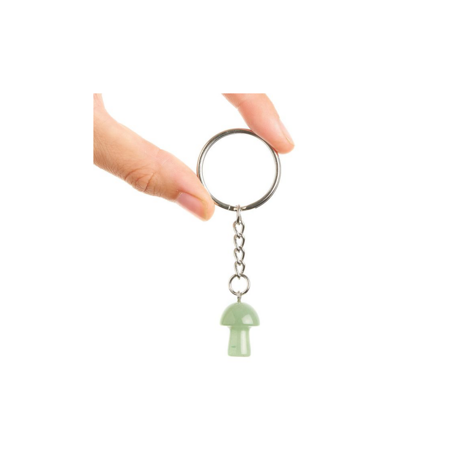 This keyring showcases a polished green aventurine carved into a cute mushroom shape. Known for its vibrant green color and subtle shimmer, green aventurine has been appreciated since ancient times for its beauty and connection to nature. Symbolizing luck and growth, green aventurine brings a fresh, lively feel to this charming accessory. Expertly crafted to highlight the stone’s natural sparkle, the mushroom keyring is a stylish and meaningful piece perfect for everyday use.