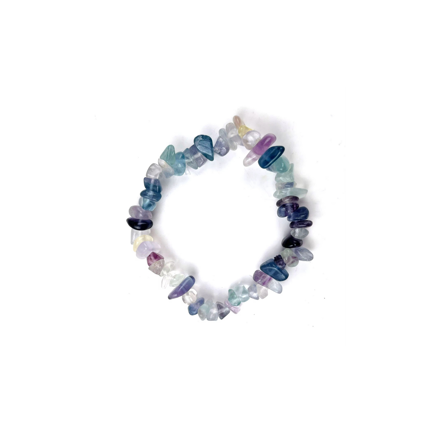 Fluorite chip bracelet symbolizes clarity, focus, and protection. Known for its vibrant colors, it is believed to enhance mental clarity, balance energies, and shield against negative influences, making it an ideal accessory for boosting concentration and supporting emotional well-being.