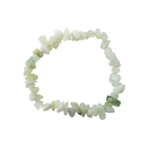 Our beautiful New Jade chip bracelet is a delicate and soothing accessory made from small, irregular chips of pale green New Jade. Its soft, pastel hue symbolizes harmony, balance, and renewal. This bracelet exudes a calming and natural elegance, making it a versatile addition to any wardrobe.
