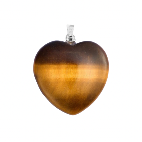 Our tiger’s eye heart pendant with a silver-plated bail is a stunning accessory showcasing the natural golden-brown hues and chatoyant shimmer of Tiger's Eye, carved into a heart shape. A stone that symbolizes strength and good luck. The silver-plated bail adds a touch of elegance and ensures durability, making it perfect for pairing with a chain or cord. This pendant combines natural beauty with a classic design, suitable for any occasion.
