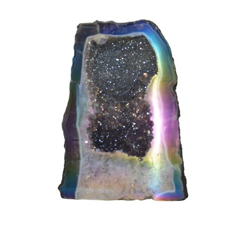 Our amethyst cathedral pearl finish is a stunning piece of natural art that is sure to capture the attention of anyone who sees it. Amethyst is a purple variety of quartz that has been highly valued for centuries for its beauty and perceived healing properties. It has been used in jewelry and decorative objects since ancient times. The amethyst cathedral is a unique formation of amethyst crystals that grow inside a cavity or pocket in a rock formation. Over time, the crystals grow to form a beautiful cluster that resembles a cathedral, with the amethyst crystals taking on a variety of shapes and sizes.The pearl finish on the amethyst cathedral is created through a process of polishing the surface of the crystal, which gives it a smooth, lustrous appearance. This finish enhances the natural beauty of the crystal and gives it a unique and luxurious look. A stone that symbolises peace, tranquility and calmness. Amethyst cathedral pearl finish can be displayed in a variety of ways. It can be placed on a tabletop, shelf, or mantlepiece, and its natural beauty.