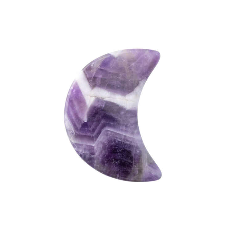 Our  Amethyst 30mm Moon is a stunning gemstone pendant shaped like a crescent moon. Amethyst, known for its rich purple hues, is prized for its beauty and vibrant color. This 30mm moon-shaped pendant showcases the stone's natural clarity and shimmering qualities. Amethyst is often associated with calmness, clarity, and tranquility, making it a perfect piece for adding a touch of elegance and serenity to your collection or jewelry. Its moon shape enhances the sense of mystique, making it a meaningful and stylish accessory.