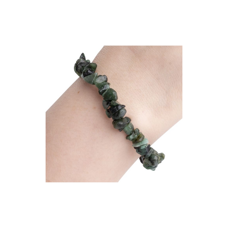 Emerald Chip Bracelet is a beautifully crafted piece featuring natural emerald chips, each showcasing its rich green hues and unique textures. The bracelet offers a timeless design, allowing the vibrant green tones of emerald to shine through in a natural and elegant way. Emerald symbolizes growth, renewal, and abundance, making this bracelet a meaningful and striking accessory. Its captivating color and natural beauty make it a perfect addition to any jewelry collection.